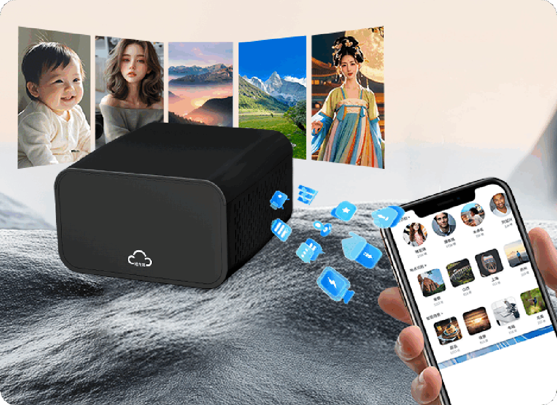 手机空间总不够用?手机照片自动备份到拾光坞,宝宝照片全都汇总到一个相册,AI 智能按人物地点自动分类,全家一起存储一起看。