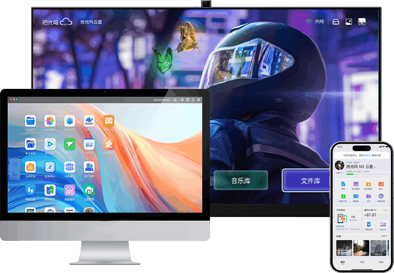 拾光坞云盘支持 苹果手机、安卓手机、Windows电脑、MAC 电脑、安卓 TV、Web 浏览器 多设备登录访问。