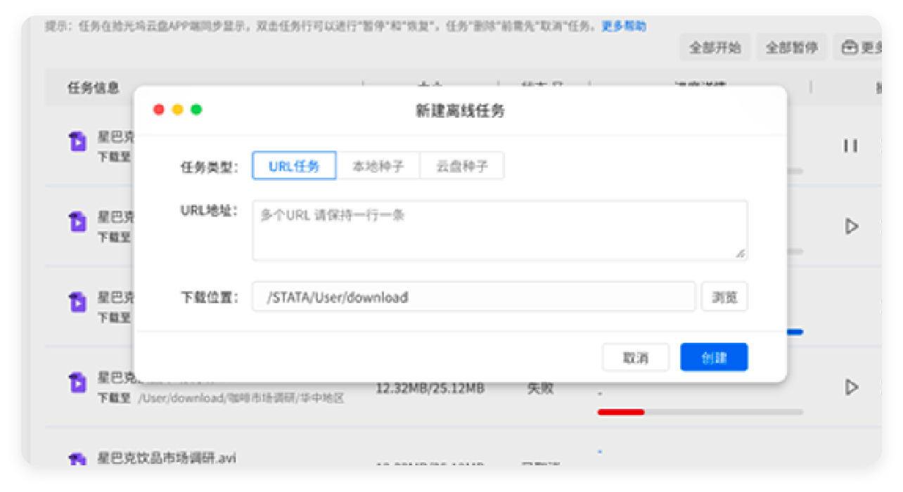 支持 BT/PT/种子/磁链接/HTTP 链接、百度网盘